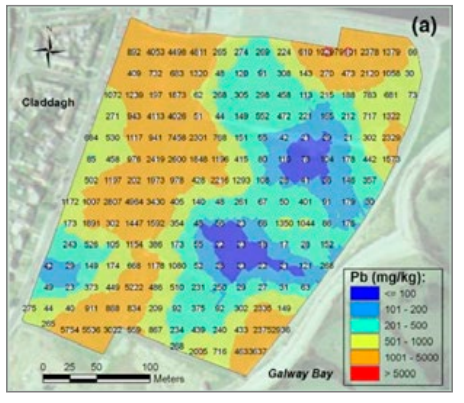 圖1. 在實施土壤修復項目的過程中采集到的樣本。左圖顯示為較差的采樣策略:采集的樣本數量不足,可能會出現大量的錯誤。右圖為正確的采樣方式:采集足夠數量的樣本,以確保場地各個區(qū)域的土壤都被檢測到。
