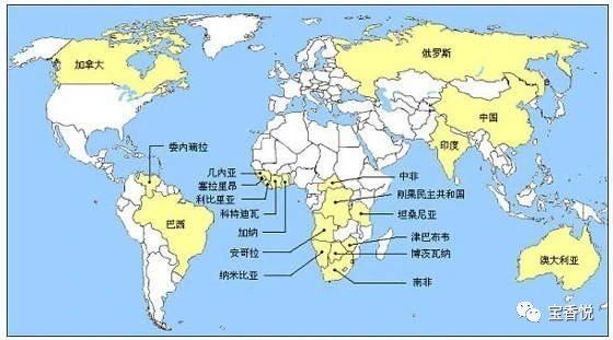 南亞和南美、非洲是彩色寶石的主要產(chǎn)地,特別是緬甸、巴西、斯里蘭卡、馬達(dá)加斯加、俄羅斯、加拿大等國,擁有數(shù)種寶石的頂級礦藏,占世界寶石資源分布總量的95%以上。著實(shí)令人羨慕,而資源比較貧乏的區(qū)域有歐洲、格陵蘭、北美東部和西非。