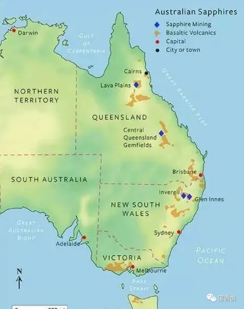 昆士蘭州的安納基及新南威爾士的因弗雷爾-格冷伊尼斯地區(qū)產(chǎn)藍(lán)寶石,其產(chǎn)量占世界總產(chǎn)量的60%。