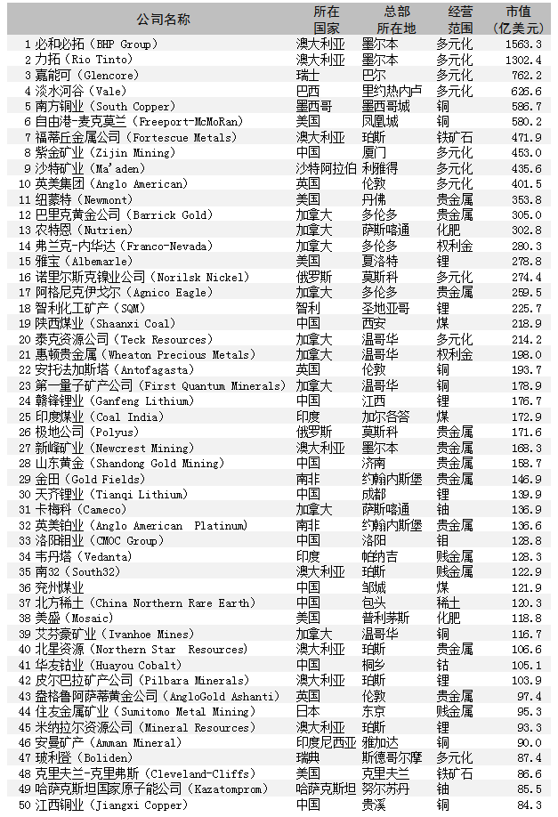 全球第二季度前50加礦企名單新鮮出爐!印尼礦企首次登上!