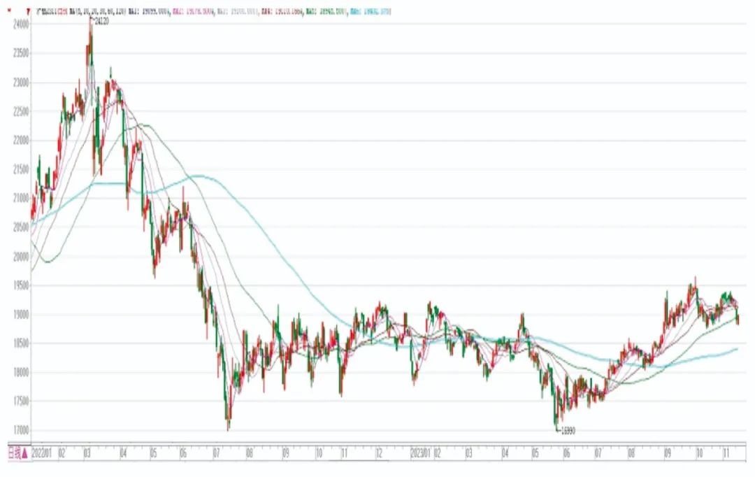 一是鋁價呈現高位回調態勢。9月下旬鋁價大幅上漲, 但10月份鋁價未能延續上漲態勢,呈高位回調的走勢,10月初,由于下游消費轉弱,鋁呈累庫狀態,因此節后鋁價走勢連續低迷,10月中旬,云南地區由于枯水季,部分電解鋁企業減產,加之宏觀政策面有偏利好消息的支撐,使得鋁價有一定反彈。但是由于下游消費連續低迷,后續鋁價上行壓力仍較大。10月份滬鋁主力合約價格處于18741元/噸~19252元/噸之間,均價為18996元/噸,環比上升304元/噸,漲幅1.6%,同比上升767元/噸,漲幅4.2%。滬鋁主力合約價格走勢情況見圖4。