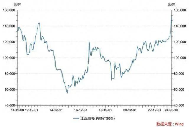 小金屬方面,年初至今,鉬精礦(45%-50%)上漲17.4%,錫上漲24.9%。被譽為“工業(yè)牙齒”的能源金屬鎢的價格在近期沖上了十年新高。江西地區(qū)65%品位的鎢精礦在5月13日的均價達(dá)到了15.35萬元/噸,較年初已上漲25%,創(chuàng)下了自2013年以來的新高。