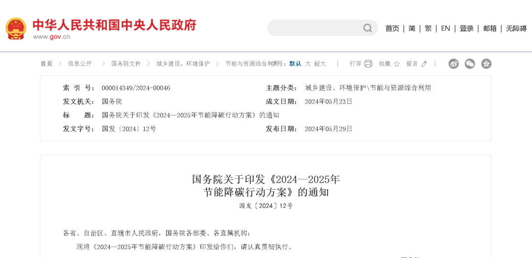 為貫徹落實黨中央、國務院決策部署,錨定“十四五”節(jié)能降碳目標任務,加大節(jié)能降碳攻堅力度,分領域分行業(yè)實施節(jié)能降碳專項行動,更好發(fā)揮節(jié)能降碳的經(jīng)濟效益、社會效益和生態(tài)效益,為實現(xiàn)碳達峰碳中和目標奠定基礎,國家發(fā)展改革委會同有關方面研究起草了《2024—2025年節(jié)能降碳行動方案》,經(jīng)國務院常務會議審議通過后,近日由國務院印發(fā)。